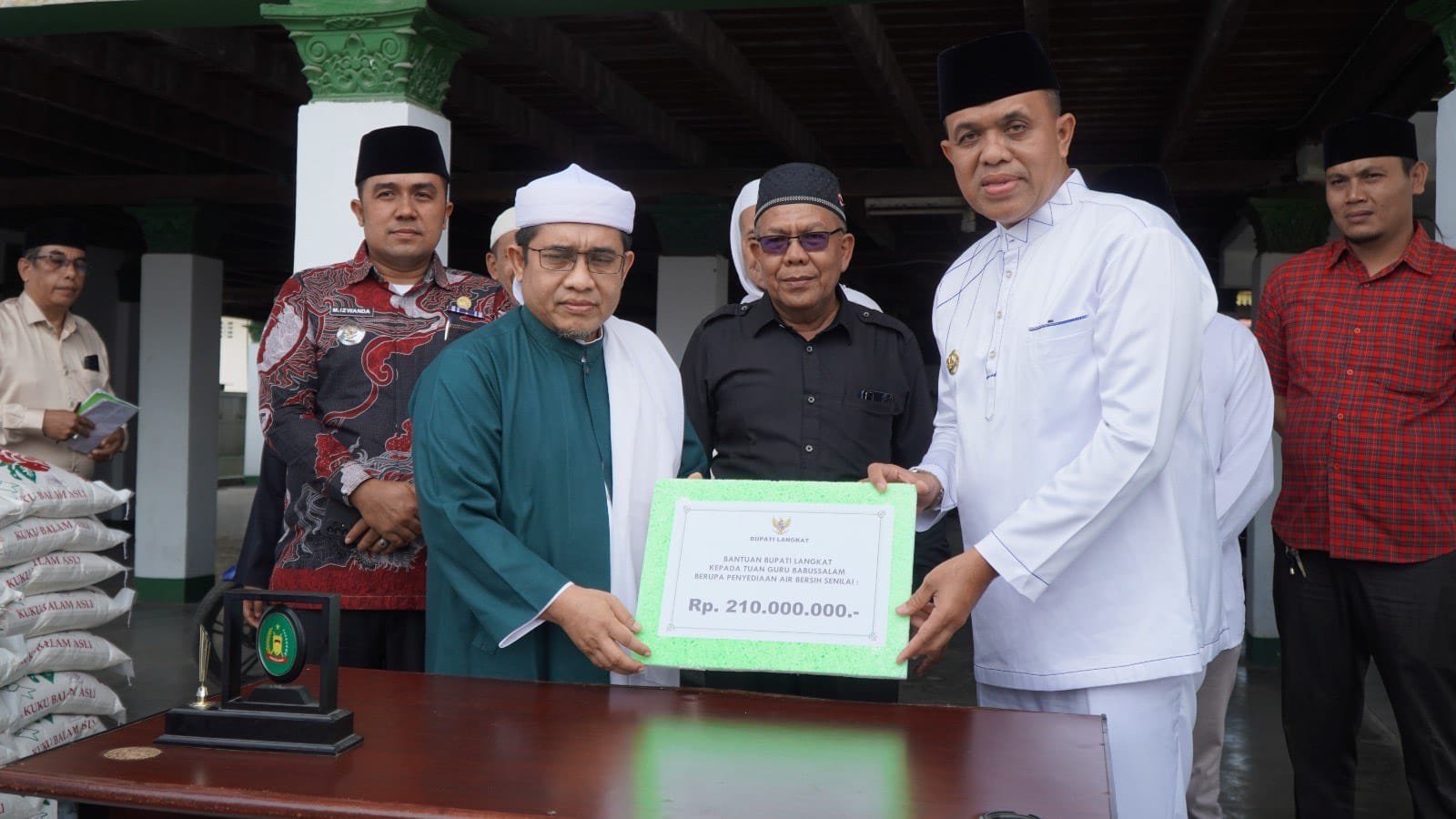 Pj. Bupati Langkat, H.M. Faisal Hasrimy AP, M.AP, melakukan Safari Jumat bersama tokoh agama dan masyarakat di Tuan Guru Babussalam, Kecamatan Padang Tualang (15/11/2024). Dalam rangka menyambut Haul ke-101 Allah Yarham Syekh Abdul Wahab Rokan Al Khalidi Naqsyabandi, Pj Bupati Langkat menyerahkan sejumlah bantuan untuk mendukung acara yang akan digelar pada akhir November mendatang.