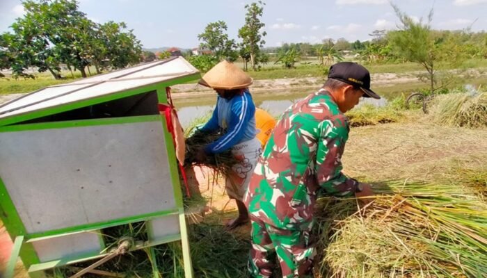 MEDIAINVESTIGASIMABES.CO.ID | Blitar – Bentuk dukungan Babinsa sebagai aparat kewilayahan dalam meningkatkan ketahanan pangan di wilayah binaannya, Serma Ichwanto Babinsa Kelurahan Kademangan Koramil 0808/10 Kademangan ikut serta terjun langsung ke sawah bantu para petani memanen padi dengan cara mesin Herek. Pendampingan panen padi yang dilakukan Babinsa adalah milik Bapak Slamet anggota Poktan (Kelompok Tani) Subur Makmur di Kelurahan Kademangan Kecamatan Kademangan Kabupaten Blitar, Kamis (21/11/2024).