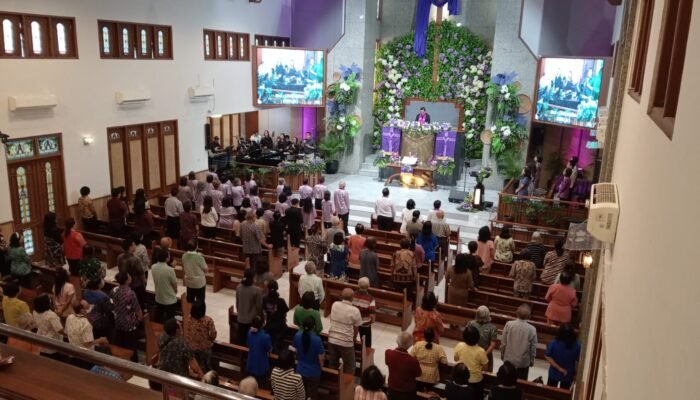 Kegiatan ibadah minggu Pagi dengan Pendeta Daniel Kristyanto Gunawan, Tema “Pengharapan Pengenapan Janji Tuhan”, jumlah jemaat 100 orang, Tutur Serka Rohmad