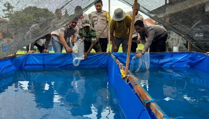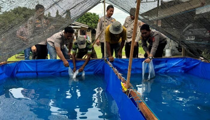 Dalam rangka mendukung program Ketahanan Pangan yang dicanangkan Presiden Republik Indonesia, Prabowo Subianto, Polsek Padang Tualang melaksanakan kegiatan pemberian Kolam Ikan dan Bibit Ikan Lele kepada warga Desa Tanjung putus, Kecamatan Padang Tualang, Kabupaten Langkat pada Rabu, (11 Desember 2024.)