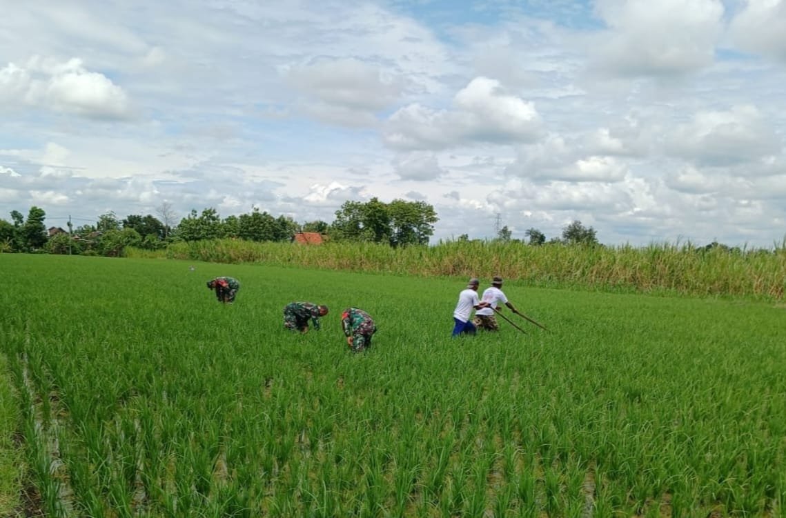 Jaga Kesuburan Tanaman Padi Babinsa Bantu Petani Cabut Rumput Di Sawah