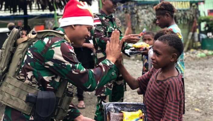 MEDIAINVESTIGASIMABES.CO.ID | KEEROM – Dalam rangka memeriahkan Hari Natal dan menyambut Tahun Baru 2025, Satgas Yonif 131/BRS Pos Kalilapar mengadakan perlombaan panjat pohon pinang dan makan kerupuk kepada anak-anak Kampung Kali Lapar, Distrik Mannem, Kab. Keerom, Papua, Jum’at (27/12/2024).