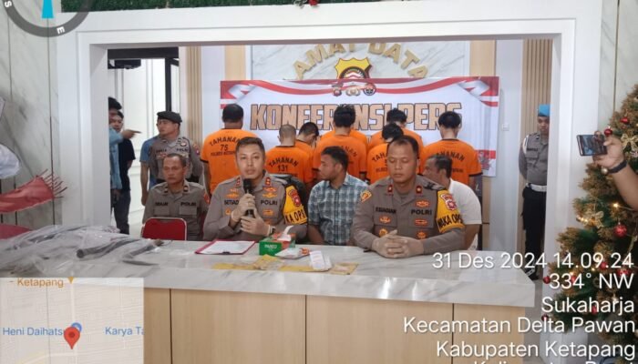 Polres Ketapang Polda Kalimantan Barat, menggelar konferensi pers akhir tahun yang memaparkan capaian kinerja selama 2024 di bawah kepemimpinan Kapolres AKBP Setiadi, SH, SIK, MH, di Mapolres Ketapang, Selasa (31/12/24).