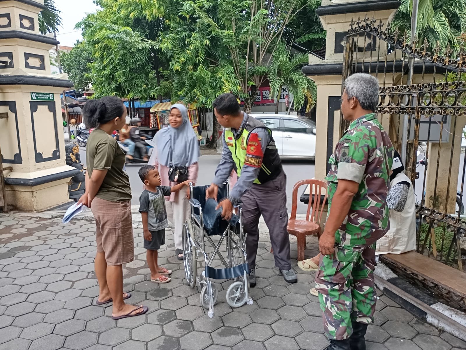 Babinsa, linmas dan anggota sibat pimpinan kelurahan serengan mengusahakan bantuan kursi roda. ini merupakan bagian dari tugasnya sebagai Babinsa untuk selalu dekat dengan masyarakat dan membantu meringankan beban warga yang membutuhkan.