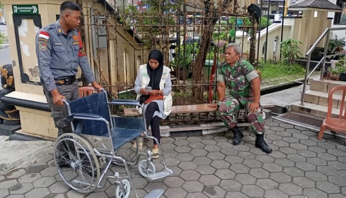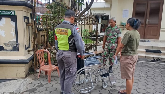 MEDIAINVESTIGASIMABES.CO.ID | Surakarta – Babinsa Kelurahan Serengan Koramil 03/Serengan Kodim 0735 Surakarta Serka Aris Setyo Utomo bersama Linmas dan Anggota Sibat PMI membantu mencarikan pinjaman Kursi Roda dari almarhum Pak Gandul yang akan dipakai Ibu Sarjiem Warga Rt 01/7 Serengan Kota Surakarta, Rabu pukul 10.00 Wib (01/01/2025)