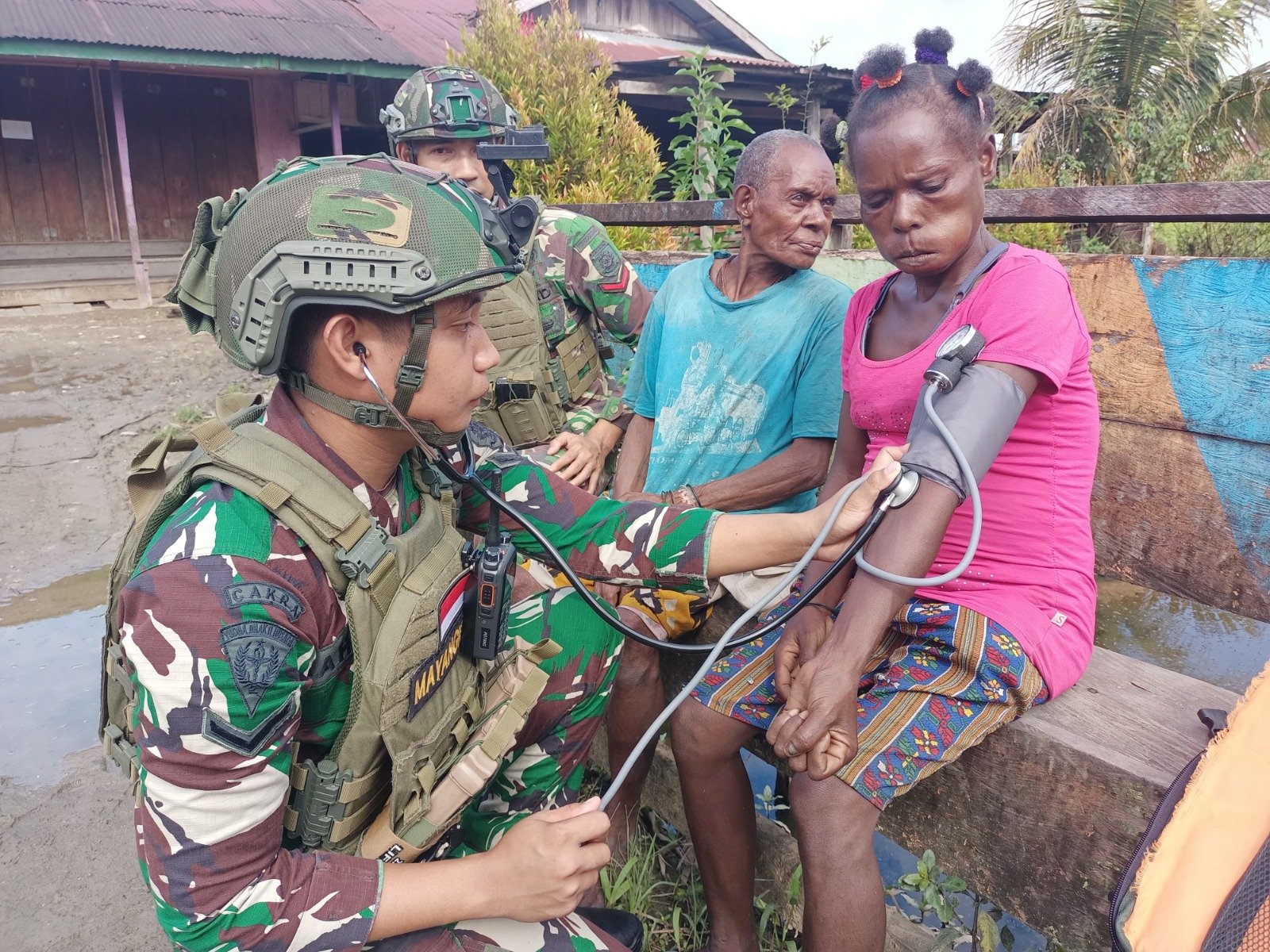 MEDIAINVESTIGASIMABES.CO.ID | Krepkuri Nduga – One of the military units under the command of the Indonesian Armed Forces Operational Command HABEMA, the Task Forces of the Para Raider Infantry Battalion 503/Mayangkara Kostrad, is currently conducting mobile security at the border of Indonesia and Papua New Guinea, especially in Nduga Regency, Papua Pegunungan Province. On Thursday, 2 January 2025, the Patrol Team of the 503 Task Forces visited the Banggabeak Village, Krepkuri District, and provided medical services during the patrol.