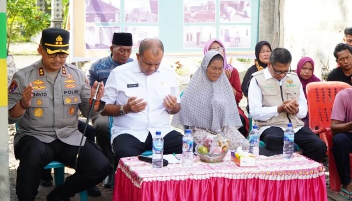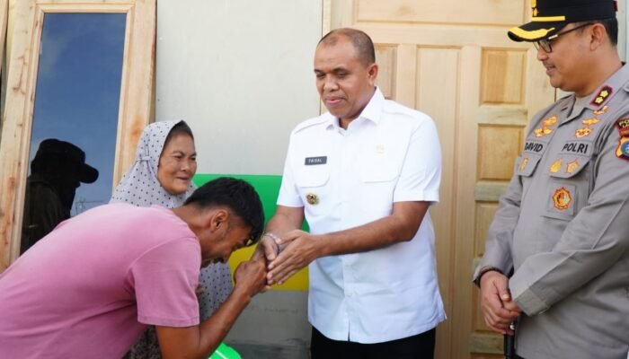 Penjabat Bupati Langkat, H.M. Faisal Hasrimy, AP, MAP, bersama Ketua Baznas Kabupaten Langkat, Thantawi Jauhari, MA, menyerahkan rumah hasil program bedah rumah kepada Ibu Nurlela, warga Dusun III, Desa Baru Pasar VIII, Kecamatan Hinai, yang menjadi korban kebakaran, Rabu (8/1/2025). Rumah ini dibangun dengan total bantuan senilai Rp. 25 juta sebagai wujud solidaritas dan kepedulian terhadap masyarakat yang tertimpa musibah.