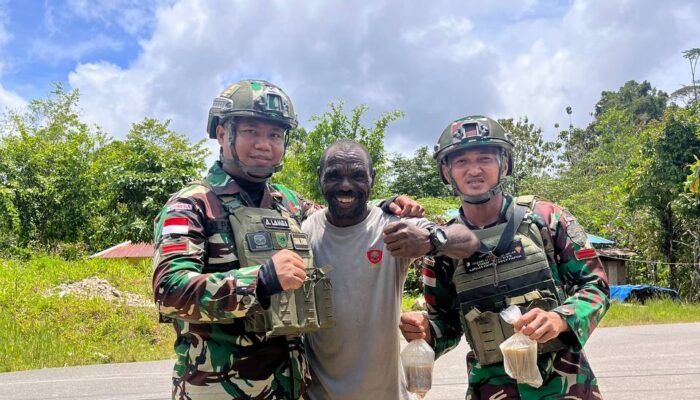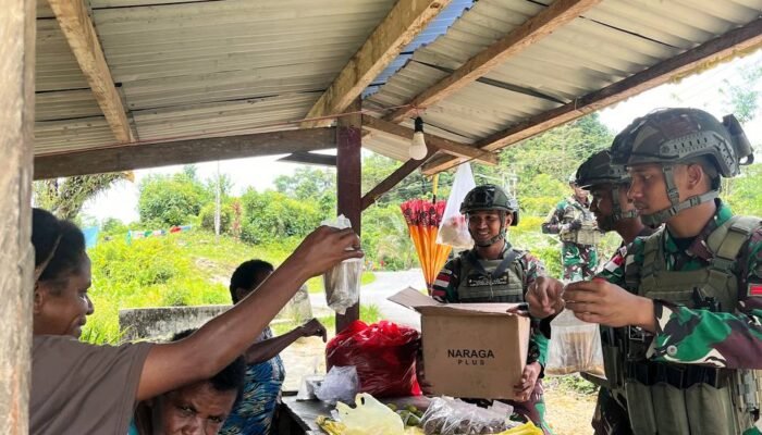 MEDIAINVESTIGASIMABES.CO.ID | Maybrat – Sebagai bentuk kepedulian dan memenuhi kebutuhan gizi serta nutrisi bagi masyarakat di wilayah penugasan, Pos Ainod Satgas Pamtas RI-PNG Kewilayahan Papua Barat Daya Yonif 762/VYS berkeliling kampung kunjungi tiap rumah warga bagikan puluhan gelas bubur kacang hijau di Kampung Aisyo, Distrik Aifat, Kabupaten Maybrat, Papua Barat Daya, Rabu (08/01/2025).