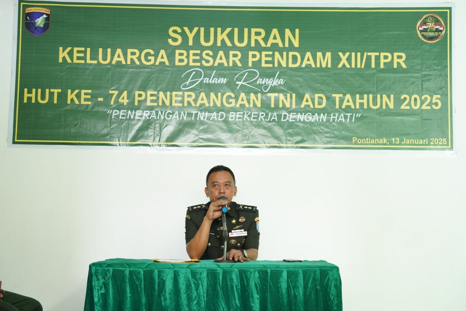 MEDIAINVESTIGASIMABES.CO.ID | Pontianak – Keluarga besar Penerangan Kodam (Pendam) XII/Tanjungpura menggelar acara syukuran dalam rangka memperingati Hari Ulang Tahun (HUT) ke-74 Penerangan TNI Angkatan Darat. Bertempat di Media Center Kodam XII/Tpr, Jalan Teuku Umar, Kota Pontianak Senin (13/1/2025)