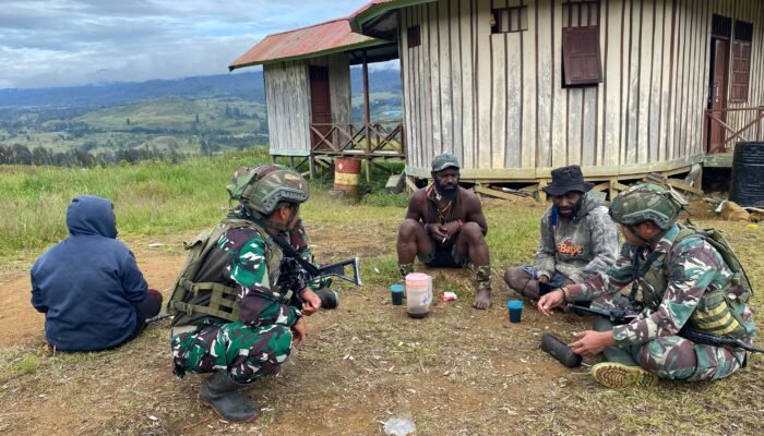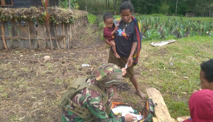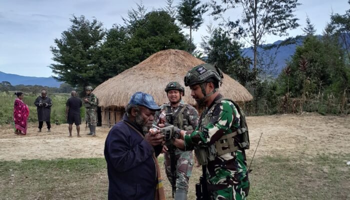 MEDIAINVESTIGASIMABES.CO.ID | PAPUA [ ILAGA ] – Personil Satgas Yonif 323/Buaya Putih Kostrad melaksanakan kegiatan Anjangsana sekaligus memberikan Pelayanan Pengobatan Gratis kepada masyarakat Kampung Wako, Distrik Ilaga, Kabupaten Puncak, Papua Tengah, Sabtu (25/01/2024).