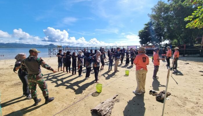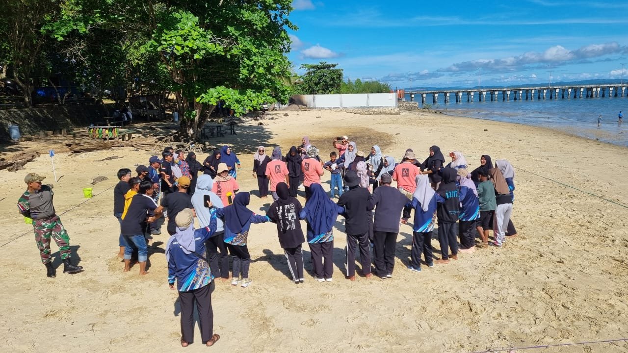 Kegiatan yang berlangsung di Pantai Encing ini dimulai dengan sesi pendampingan belajar, di mana anggota Satgas memberikan bimbingan kepada para murid bersama para guru PKBM. Dilanjutkan dengan pemberian materi Wawasan Kebangsaan yang meliputi nilai-nilai persatuan, toleransi, dan semangat gotong royong.