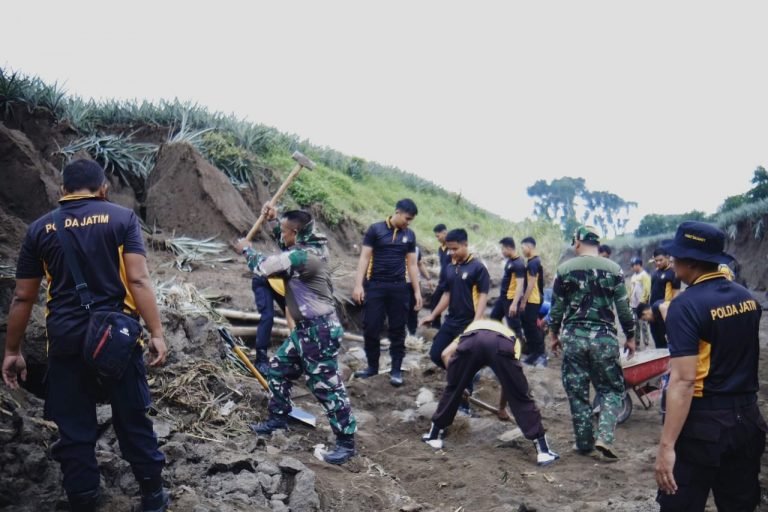 Kapolres Kediri AKBP Bimo Ariyanto S.H., S.I.K, melalui Kasat Samapta Polres Kediri AKP I Nyoman Sugita menuturkan kegiatan ini merupakan tanggap bencana dan kerja bakti bersama warga sekitar.