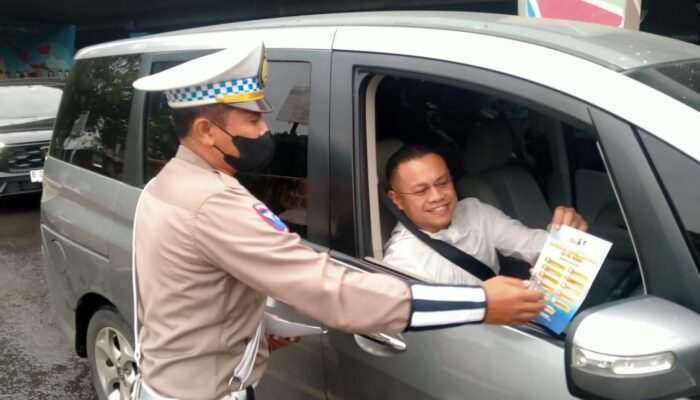 Dalam kegiatan tersebut, petugas membagikan brosur berisi himbauan keselamatan berlalu lintas serta membentangkan spanduk yang menginformasikan dimulainya Operasi Keselamatan 2025.
