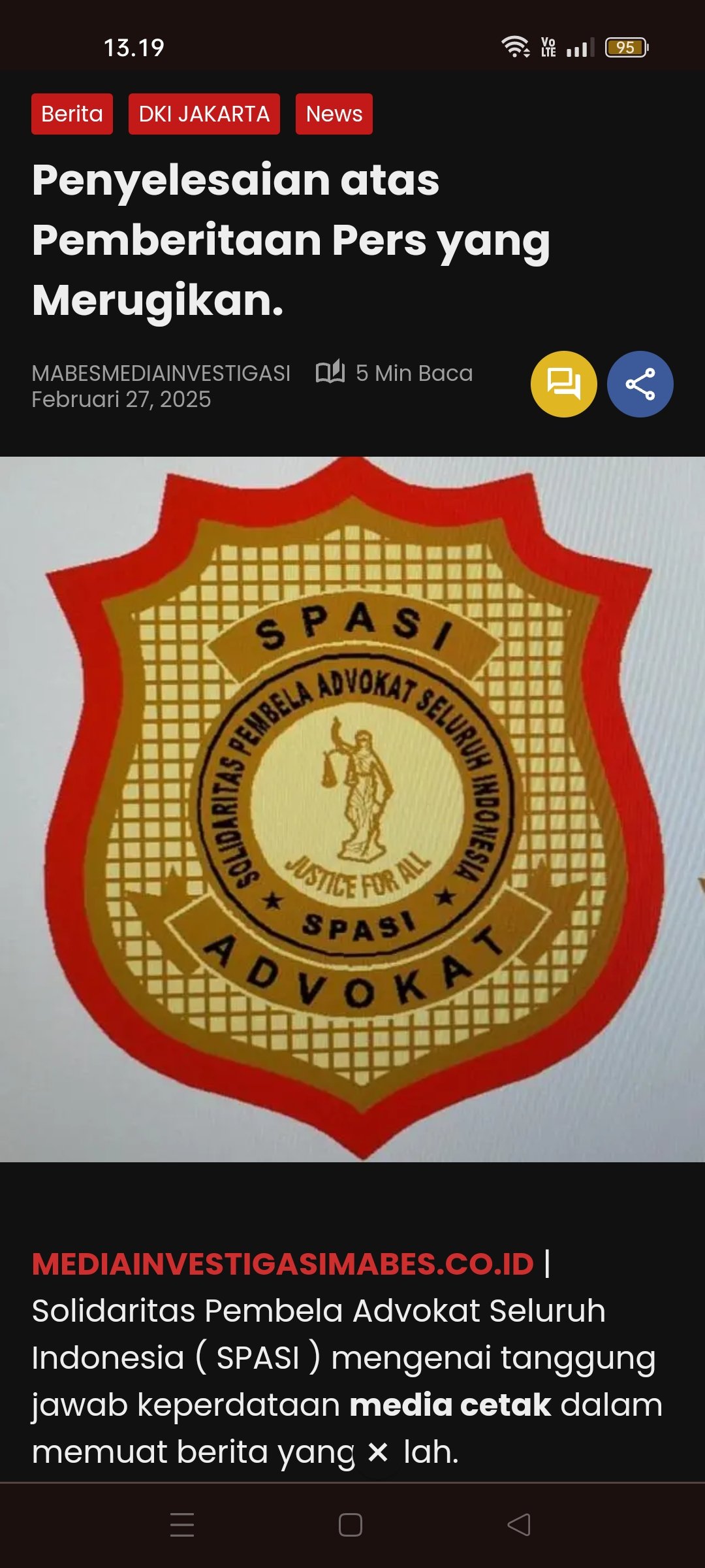 MEDIAINVESTIGASIMABES.CO.ID | Jakarta – Solidaritas Pembela Advokat Seluruh Indonesia ( SPASI ) mengenai tanggung jawab keperdataan media cetak dalam memuat berita yang salah.