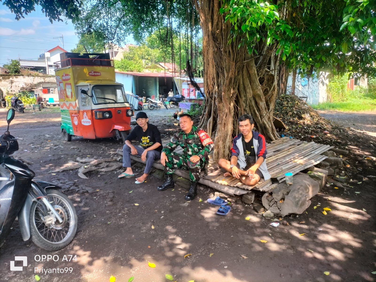 MEDIAINVESTIGASIMABES.CO.ID | Surakarta (Jawa Tengah) ~ Babinsa Kemlayan Koramil 03/Serengan Kodim 0735/Surakarta Serka Priyanto melaksanakan Komsos dengan Teguh warga RT 02 RW 03 Kemlayan Serengan Kota Surakarta, (02/03/2025).