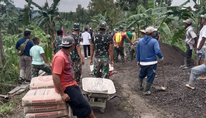 MEDIAINVESTIGASIMABES.CO.ID | Boyolali (Jawa Tengah) ~ Anggota TNI yang tergabung dalam satgas TMMD Reg ke 123 Kodim 0724/Boyolali bersama masyarakat tampak kompak bahu membahu mengecor jalan yang menjadi jalan alternatif menuju ke Kabupaten Semarang yang merupakan sasaran fisik utama TMMD reguler ke -123 Kodim 0724/Boyolali, (02/03/2025).