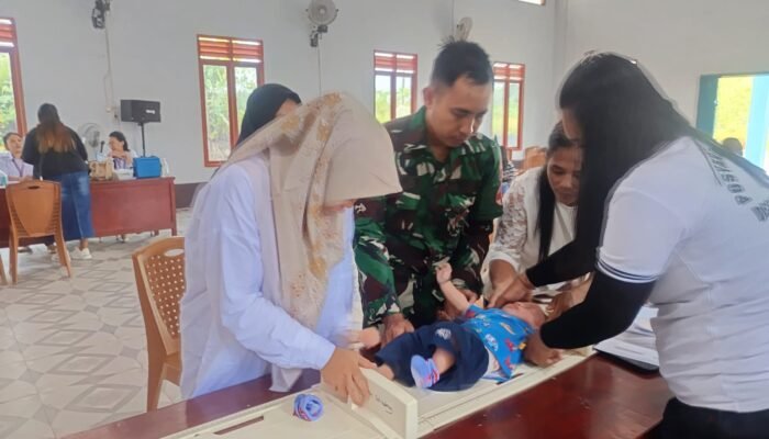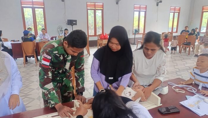 MEDIAINVESTIGASIMABES.CO.ID | KAPUAS HULU – Demi terwujudnya tumbuh kembang balita, anggota kesehatan Satgas Pamtas Pos Mentari bekerjasama dengan Puskesmas Sebindang menggelar kegiatan Pos Pelayanan Terpadu (Posyandu) Balita bulanan di Gedung Balai desa Sebindang, Kecamatan Badau, Kabupaten Kapuas Hulu, Selasa, (15/4/2025).