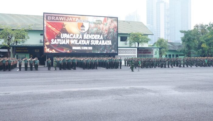 MEDIAINVESTIGASIMABES.CO.ID | Surabaya – Upacara rutin 17-an yang berlangsung di Lapangan Ahmad Yani Makodam V/Brawijaya, Surabaya diwarnai sejumlah pesan.