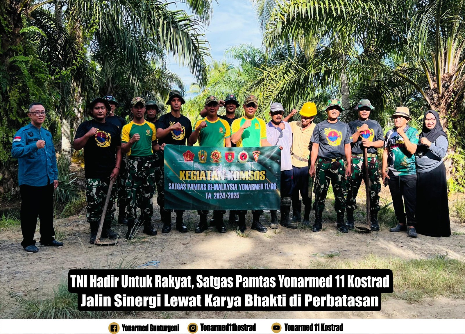 Komandan Satgas Pamtas Yonarmed 11 Kostrad, Letkol Arm Gde Adhy Surya Mahendra, menyampaikan bahwa kegiatan ini merupakan bentuk kepedulian TNI terhadap kondisi lingkungan serta wujud nyata kemanunggalan TNI dengan rakyat.