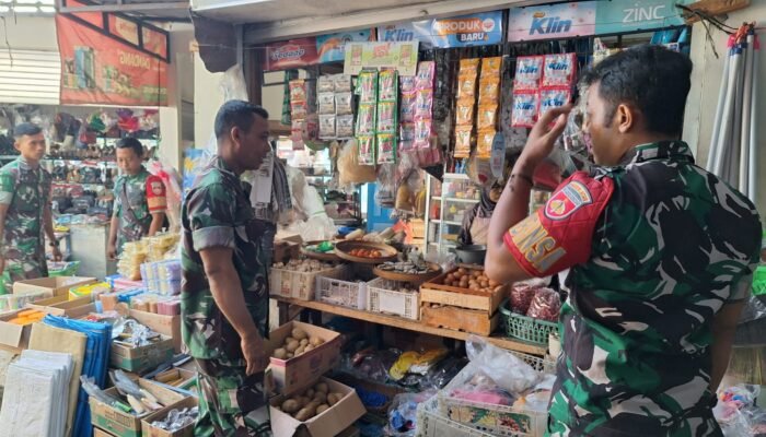 MEDIAINVESTIGASIMABES.CO.ID | Sragen – Kamis (15/05/2025) Dalam upaya menjaga stabilitas harga dan ketersediaan bahan pokok, Serda Andy Susanto beserta anggota Koramil 05/Kedawung Kodim 0725/Sragen aktif melakukan pemantauan harga sembako di pasar Kedawung. Kegiatan ini merupakan wujud nyata kepedulian TNI terhadap kesejahteraan masyarakat, khususnya dalam memenuhi kebutuhan pangan sehari-hari.