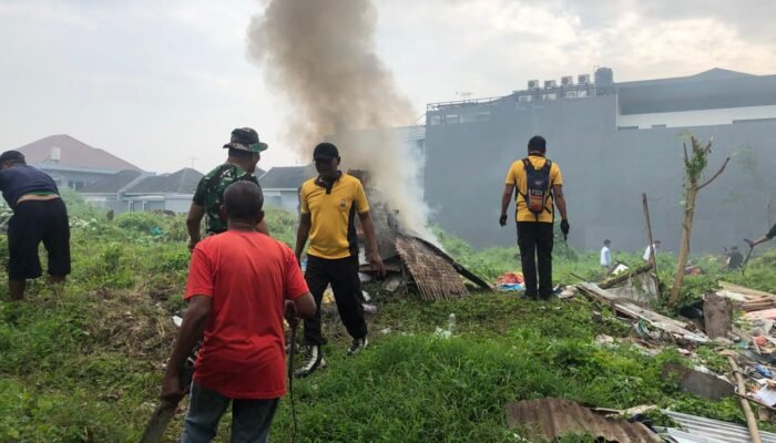 Kerja bhakti berfokus pada pembersihan lahan kosong yang sebelumnya dipenuhi sampah dan rumput liar, Jumat (16/5/2025).