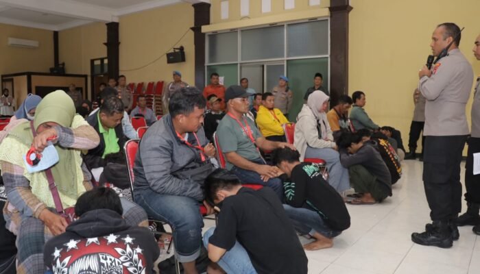 MEDIAINVESTIGASIMABES.CO.ID | LAMONGAN – Kapolres Lamongan AKBP Agus Dwi Suryanto, S.I.K., M.H memberikan arahan kepada para pemuda yang diamankan saat melakukan aksi konvoi di jalan raya.