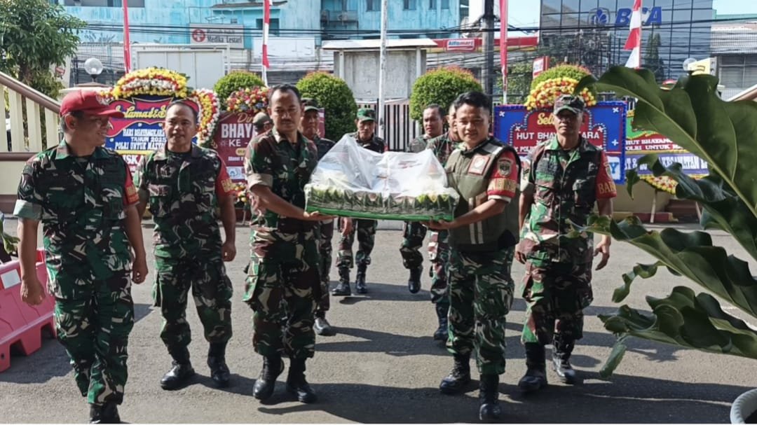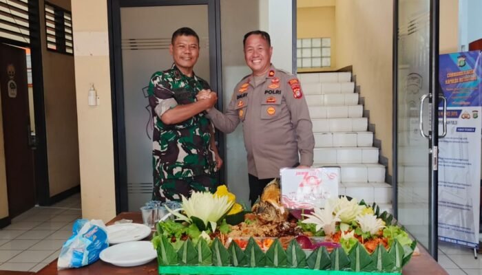MEDIAINVESTIGASIMABES.CO.ID | Ciledug – Dalam rangka mempererat sinergi antar institusi, Danramil 04 Ciledug Mayor Arh Syamsuri bersama jajaran memberikan kejutan dan ucapan selamat Hari Bhayangkara ke-79 kepada Polsek Ciledug, bagian dari jajaran Polres Metro Tangerang Kota. Rombongan tiba dengan membawa tumpeng sebagai simbol persaudaraan dan semangat kebersamaan, yang disambut hangat oleh Kapolsek Ciledug, Kompol R.A. Dalby, S.Pd., M.H., beserta seluruh personel Polsek. (1/7)