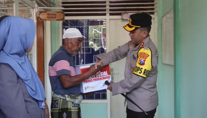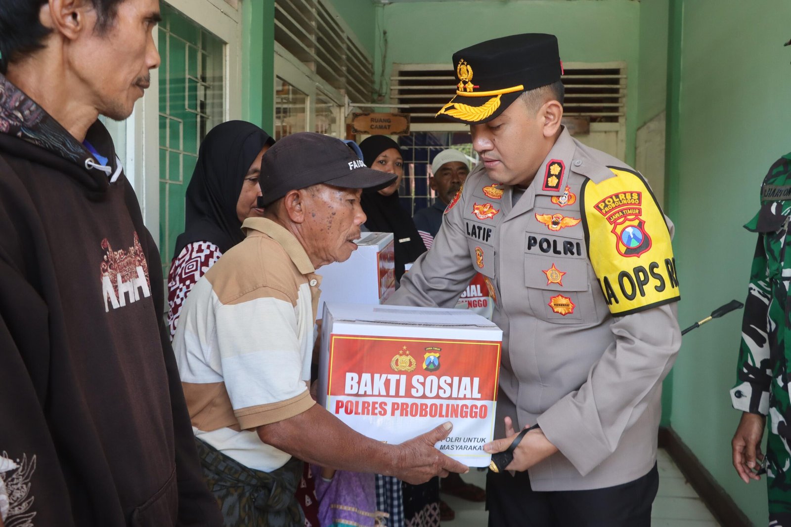 Selain melakukan peninjauan, Kapolres Probolinggo yang baru dilantik itu juga memberikan bantuan sosial paket sembako guna meringankan beban warga yang terdampak.