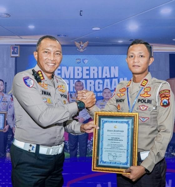 Penghargaan itu diberikan langsung oleh Dirlantas Polda Jatim Kombes Pol Iwan Saktiadi S.I.K, S.M, M.Si, dan diterima oleh Kasat Lantas Polres Kediri AKP I Made Jata Wiranegara S.I.K.
