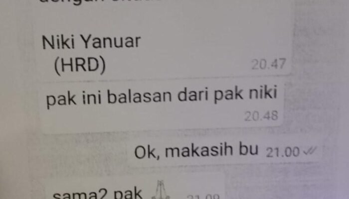 -Sdr. Surisna diberhentikan dari pekerjaannya secara sepihak oleh HRD melalui chat WA.