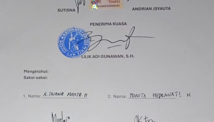 “Kedua Klien kami Sdr. Sutisna dan Sdr.Adrian Jsyauta yang berdomisili di Gg. Damai No. 20 RT.002 RW. 001 Kelurahan Harapan Jaya Kecamatan Cibinong Kabupaten Bogor telah menberikan Surat Kuasa Khusus kepada Firma Kasihhati Law Firm yang telah ditandatangani diatas materai Rp. 10.000,- pada 5 Juli 2025.” jelas Adv. Lilik Adi Gunawan, S.H.