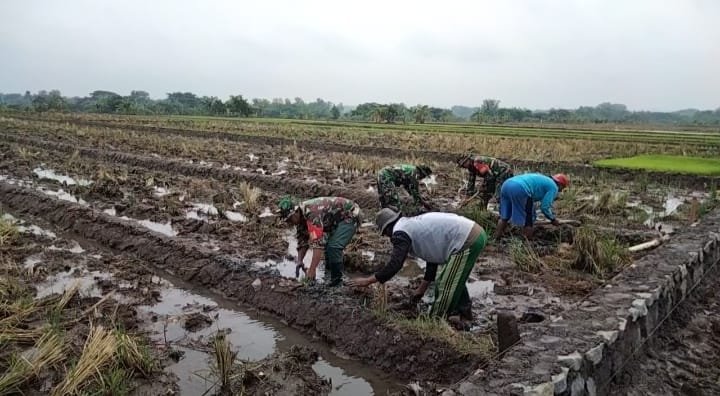 Para Babinsa terjun langsung ke sawah membantu petani dalam kegiatan persiapan lahan membantu pengolahan tanah. Kehadiran Babinsa memberikan semangat dan motivasi bagi para petani, meringankan beban kerja mereka, dan memastikan lahan sawah siap tanam tepat waktu.