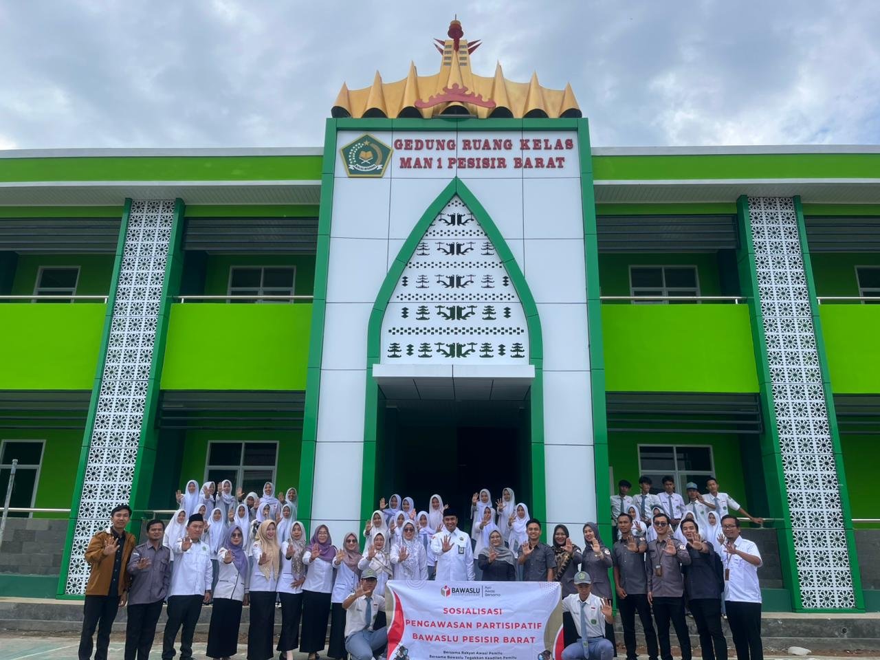 MEDIAINVESTIGASIMABES.CO.ID | Pesisir Barat — Badan Pengawas Pemilihan Umum (Bawaslu) Kabupaten Pesisir Barat melaksanakan kegiatan sosialisasi pengawasan partisipatif kepada pemilih pemula dengan menjadi pembina upacara di Madrasah Aliyah Negeri (MAN) 1 Pesisir Barat, Senin (4/8).