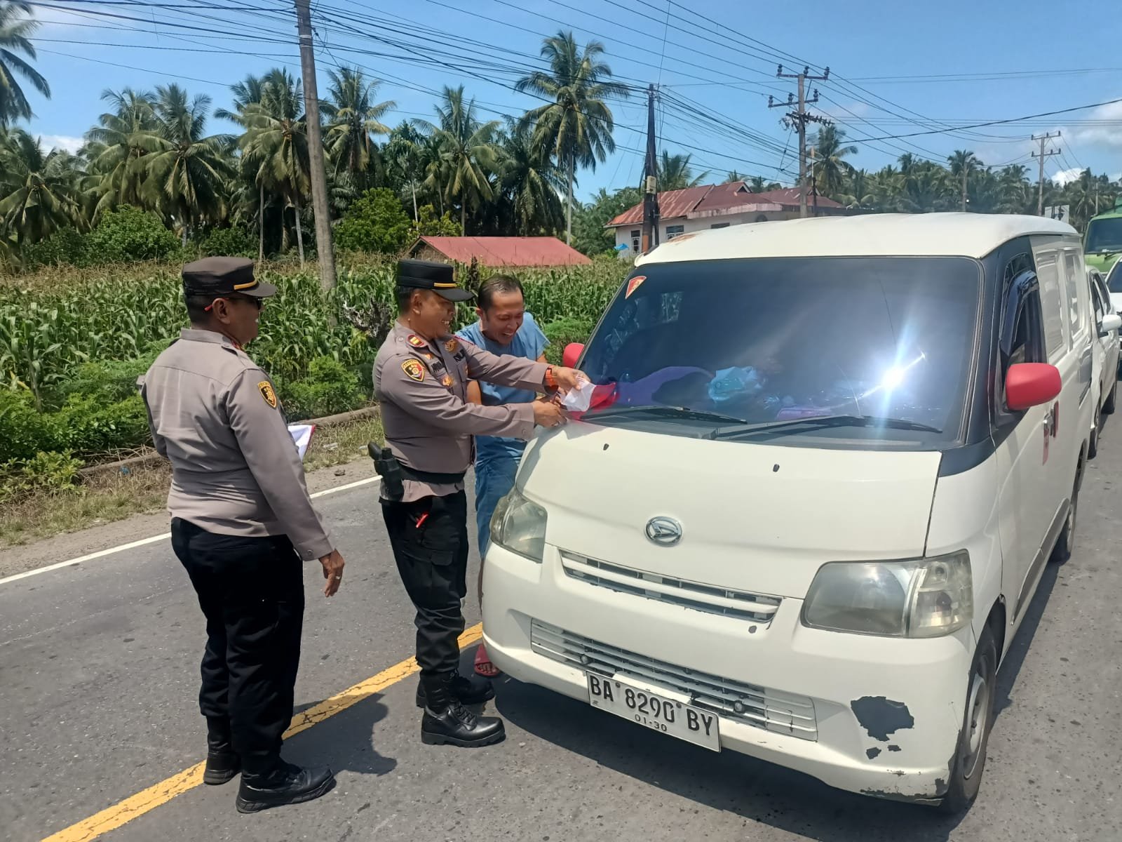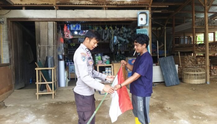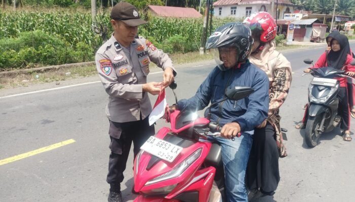 MEDIAINVESTIGASIMABES.CO.ID | BAWAN /AGAM (Sumatera Barat) ~ Polres Agam menyambut Hari Ulang Tahun Kemerdekaan Republik Indonesia ke-80, Polsek IV Nagaru gelar Pemasangan dan pembagian bendera merah putih kepada masyarakat dan pengendara di sekitar Jalan Lintas Bawan Pasaman, Kamis 7