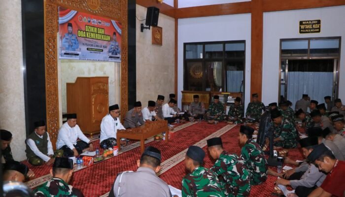 MEDIAINVESTIGASIMABES.CO.ID | NGAWI – Dalam rangka memperingati Hari Ulang Tahun ke-80 Kemerdekaan Republik Indonesia, Polres Ngawi Polda Jatim menggelar kegiatan Dzikir dan Doa Kemerdekaan di Masjid Miftahul Huda Polres Ngawi, pada Minggu malam (10/8/2025).