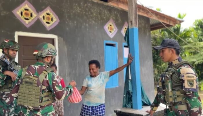 MEDIAINVESTIGASIMABES.CO.ID | Sorong Selatan , Papua Barat Daya, 11 Agustus 2025 — Dalam rangka mempererat hubungan dengan masyarakat, personel Satgas Pamtas RI-PNG Kewilayahan Yonif 763/SBA Pos Joshiro melaksanakan kegiatan Pembagian sembako yang rutin tiap bulan di bagikan kepada masyarakat (10/8).