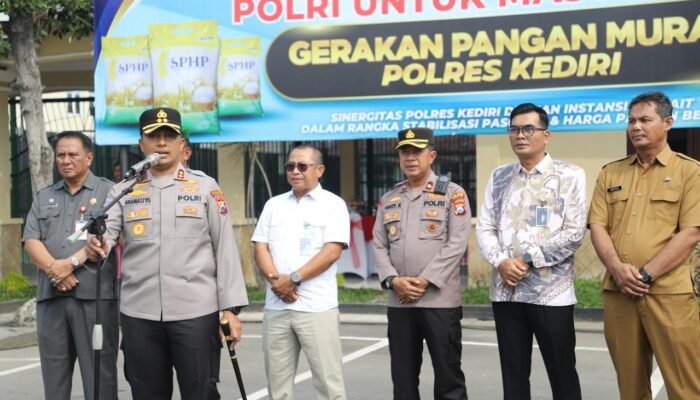Kapolres Kediri AKBP Bramastyo Priaji, S.H., S.I.K., M.S.i., menyampaikan GPM digelar sebagai bentuk kepedulian terhadap masyarakat di tengah fluktuasi harga bahan pokok.
