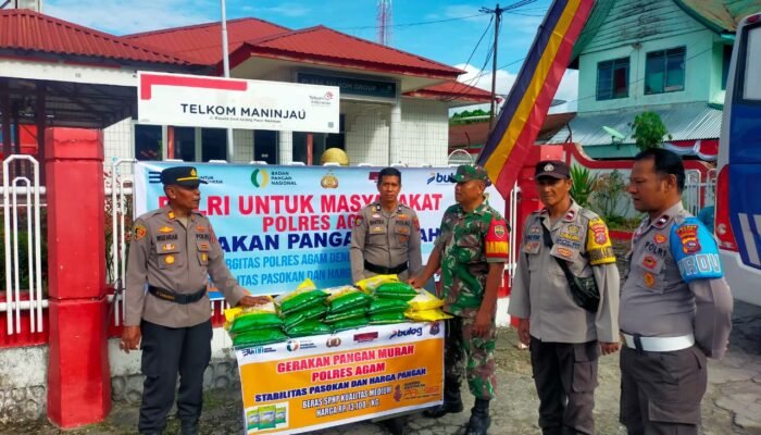 MEDIAINVESTIGASIMABES.CO.ID | AGAM / MANINJAU (SUMATERA BARAT) ~ Polsek Tanjung Raya ikut menggelar gerakan pangan murah Polri yang berlangsung di pasar Maninjau. Kegiatan ini dilakukan dalam rangka memperingati HUT