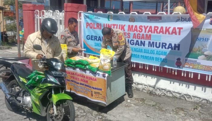 Kapolres Agam AKBP Muari,S.I.K., MM.,MH. menjelaskan gerakan pangan murah Polri ini bertujuan untuk mendukung upaya pemerintah menjaga stabilitas harga beras dan memastikan pasokan beras, termasuk pasokan kebutuhan pokok lainnya.