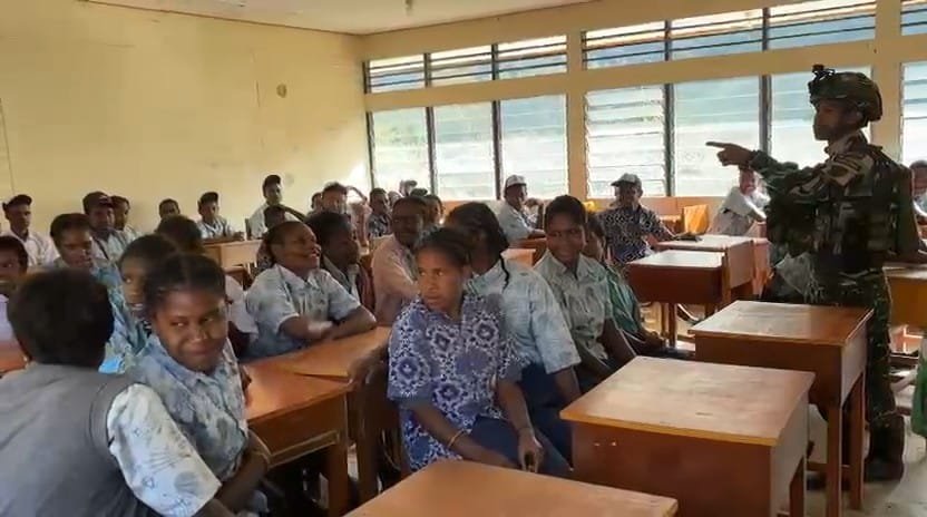 MEDIAINVESTIGASIMABES.CO.ID | Kurima, – Udara pagi di Pedalaman Yahukimo seakan menjadi lebih hangat ketika derap langkah para prajurit Pos Kurima Satgas Yonif 521/DY menggema di halaman SMP 2 Kurima, Kabupaten Yahukimo Provinsi Papua Pegunungan. (13 Agustus 2025). Bukan untuk berbaris perang, melainkan untuk menaklukkan “medan juang Pendidikan” yang lebih mulia.