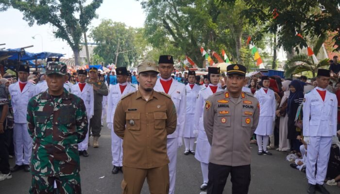 MEDIAINVESTIGASIMABES.CO.ID | LANGKAT (SUMATERA UTARA) ~ Kapolres Langkat AKBP David Triyo Prasojo, SH, SIK M.Si, menghadiri puncak peringatan Brandan Bumi Hangus (BBH) ke-78 di lapangan Petrolia Pertamina Pangkalan Brandan. Sebelumnya AKBP David Triyo Prasojo melepas peserta pawai karnaval kemerdekaan menuju tempat upacara.