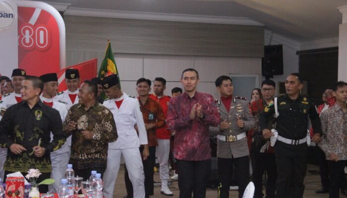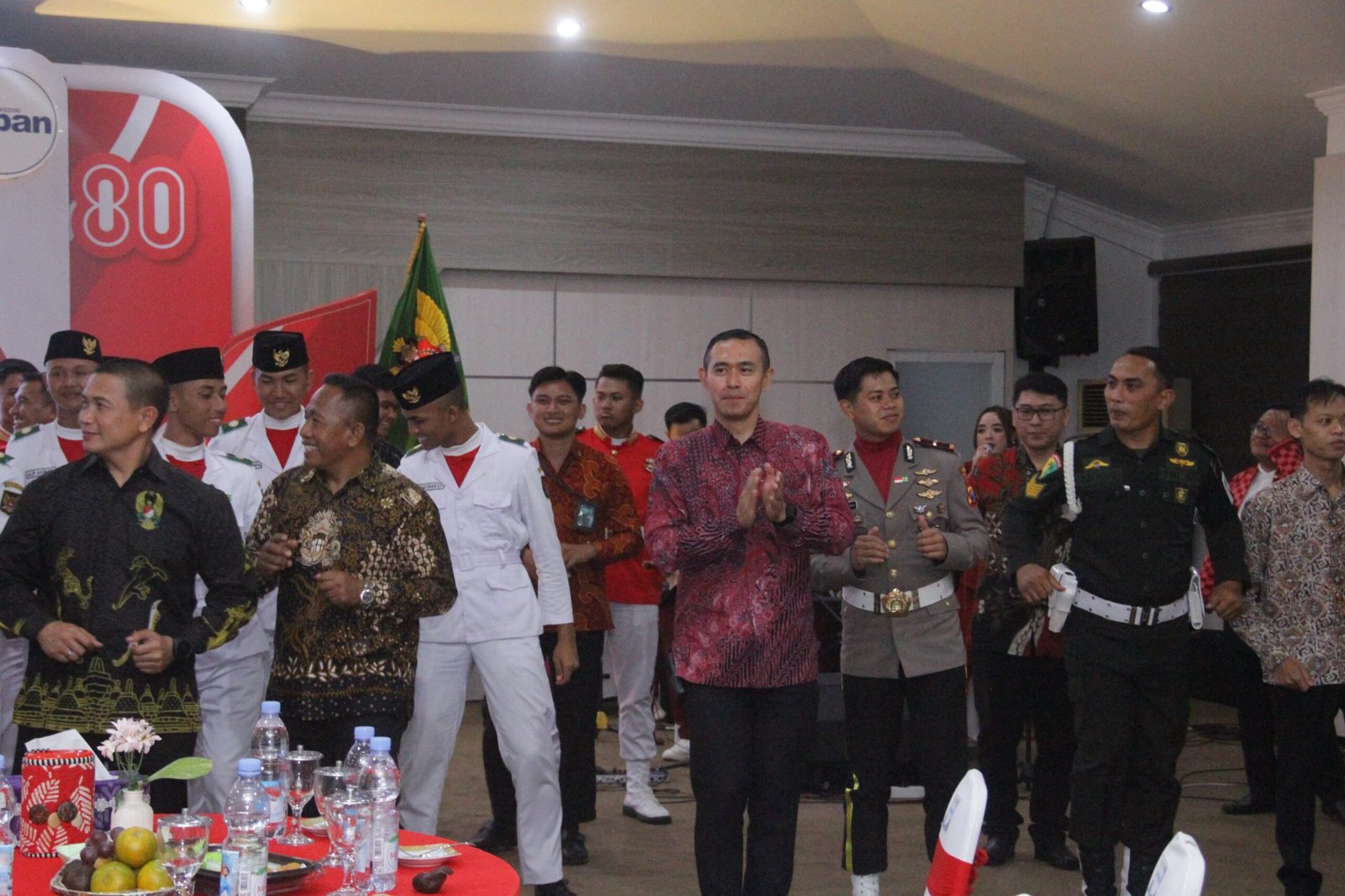 Suasana Ruang Joyoboyo Balai Kota Kediri dipenuhi semangat kebersamaan dan rasa syukur dalam rangka memperingati Hari Ulang Tahun ke-80 Kemerdekaan Republik Indonesia. Kegiatan tasyakuran yang digelar mulai pukul 19.30 WIB hingga 21.30 WIB ini mengangkat tema “Bersatu Berdaulat, Rakyat Sejahtera, Indonesia Maju,” yang menjadi pegangan bagi seluruh peserta untuk terus membangun Indonesia yang lebih baik.(17/8)