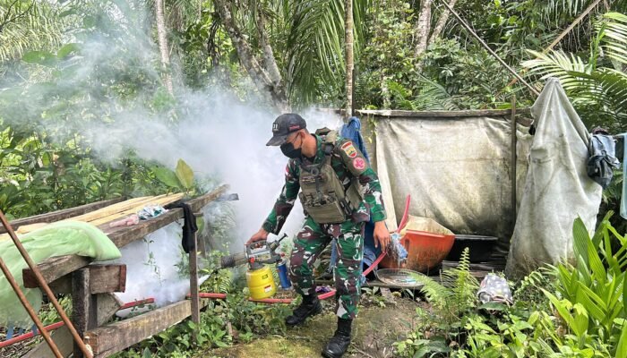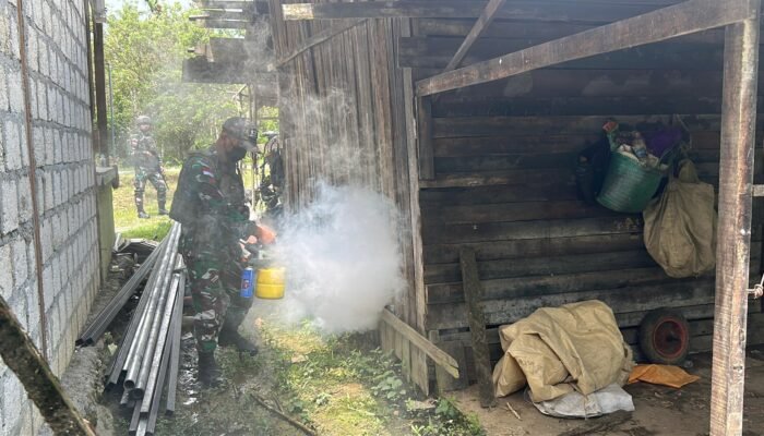 MEDIAINVESTIGASIMABES.CO.ID | KEEROM – Satgas Yonif 131/Brajasakti terus menunjukkan kepeduliannya terhadap kesehatan masyarakat di wilayah perbatasan. Melalui Pos Wembi, personel yang dipimpin Serda Andika melaksanakan fogging anti nyamuk di Perumahan Kampung Pyiawi, Distrik Mannem, Kabupaten Arso.Selasa, 19 Agustus 2025