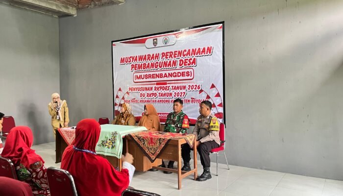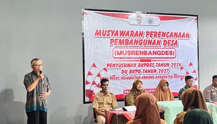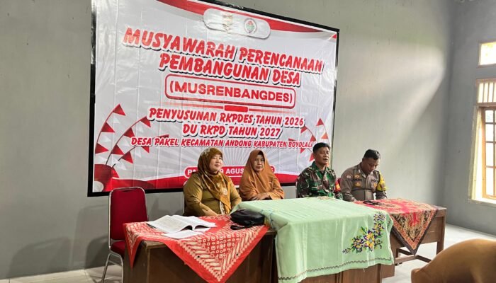 MEDIAINVESTIGASIMABES.CO.ID | Boyolali – Musyawarah Perencanaan Pembangunan Desa (Musrenbangdes) Tahun 2027 Desa Pakel, Kecamatan Andong, Kabupaten Boyolali. Kegiatan tersebut dihadiri oleh berbagai unsur, mulai dari perangkat desa, tokoh masyarakat, hingga aparat TNI-Polri.Rabu (20/08/2025).