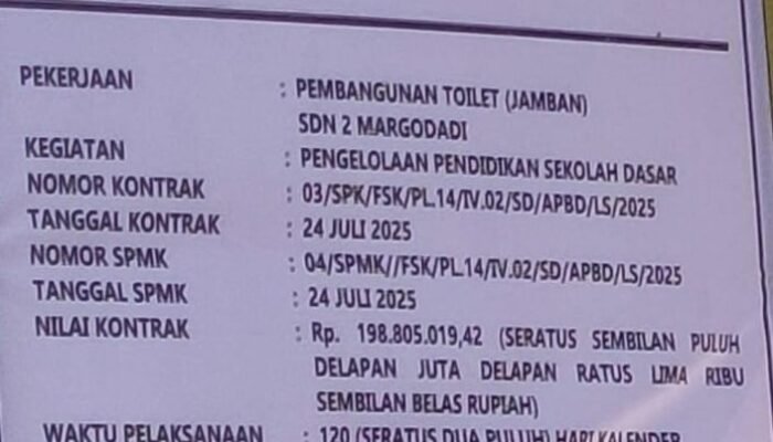 Didalam Banner Informasi yang terpampang tidak ada panjang lebar pembangunan diduga menandakan tidak adanya transparan, yang ada cuman banner nilai anggaran sebesar Rp. Rp.198.805.019.42,- (Seratus Sembilan Puluh Delapan Juta Delapan Ratus Lima Ribu Sembilan Belas Rupiah) Proyek milik Dinas Pendidikan Kabupaten Lampung Selatan.