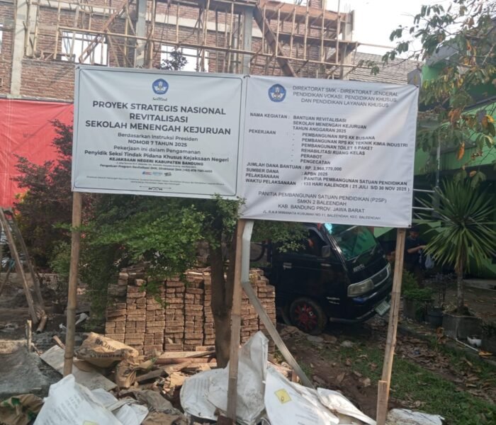 MEDIAINVESTIGASIMABES.CO.ID ,| KAB.BANDUNG (JABAR) ~ SMKN 2 Baleendah Kabupaten Bandung mendapatkan bantuan Revitalisasi Sekolah Menengah Kejuruan (SMK) tahun anggaran 2025. Program revitalisasi ini bertujuan memperbaiki dan mengembangkan sarana prasarana SMK agar memenuhi standar pelayanan pendidikan berkualitas, aman, dan nyaman bagi peserta didik.