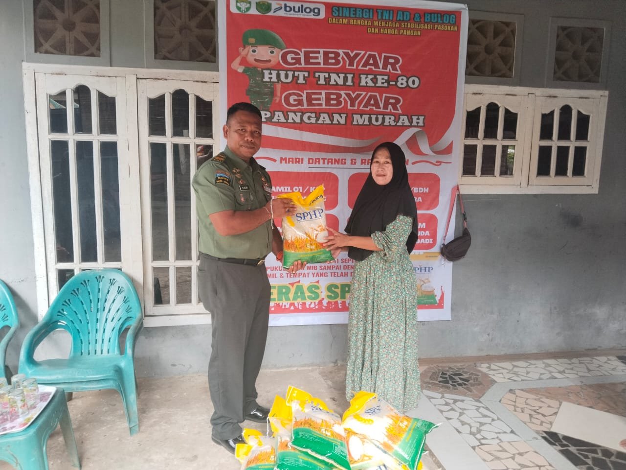 Pasi Ter Kodim 0117/Aceh Tamiang Lettu Inf M. Najar mewakili Komandan Kodim 0117/Aceh Tamiang Letkol Inf. Andi Ariyanto, S.I.P, M.I.P., menyampaikan menjelang HUT TNI Kodim 0117/Aceh Tamiang menyelenggarakan gerakan pangan murah dan bekerja sama dengan Bulog dengan menyalurkan 1600 sak beras SPHP kepada masyarakat dan mendapatkan beras dengan harga lebih murah dibandingkan harga pasar,” Terang Lettu Inf M. Najar.