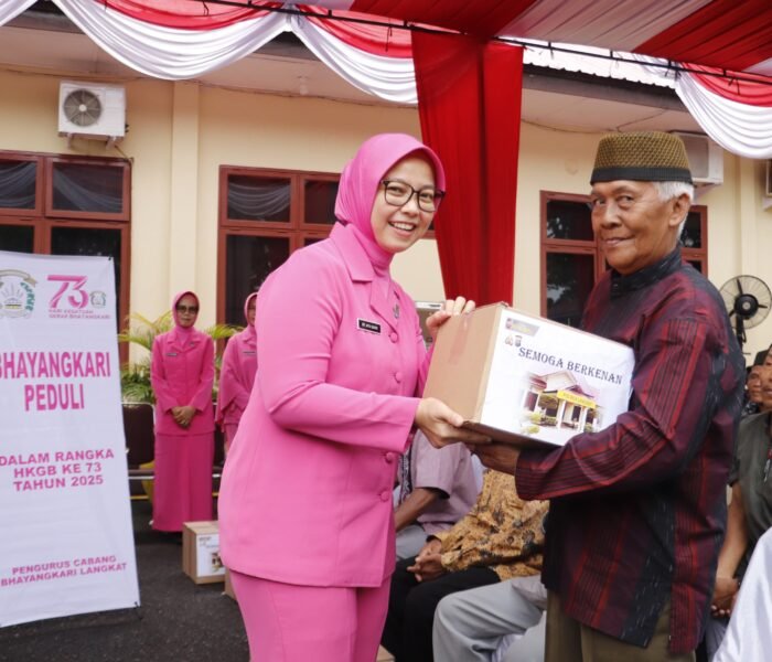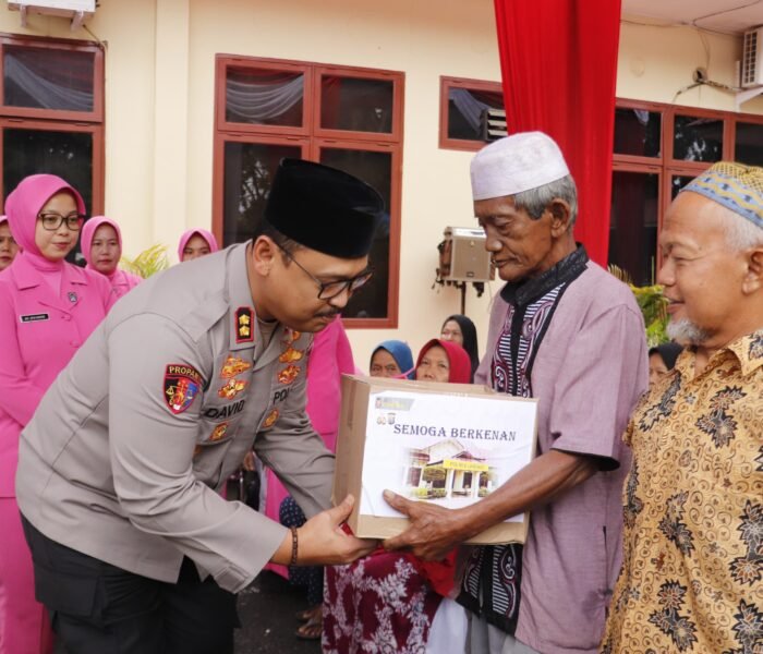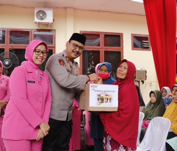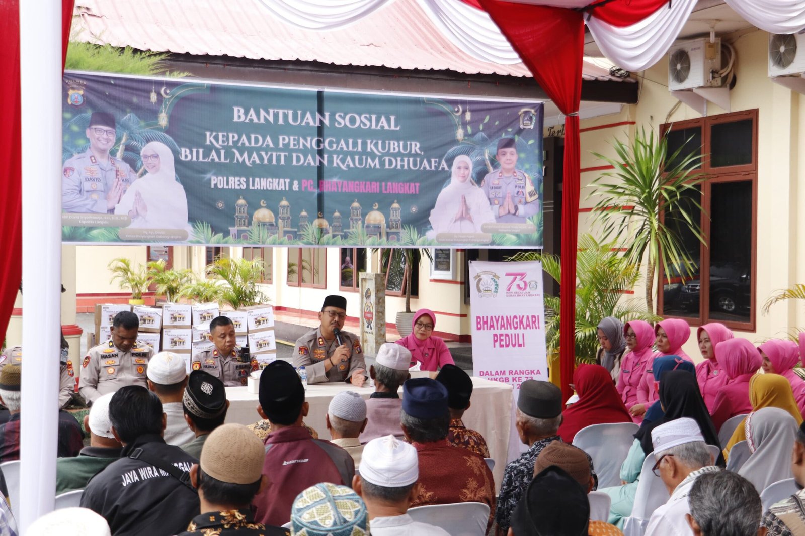 MEDIAINVESTIGASIMABES.CO.ID | LANGKAT (SUMUT) ~ Sebagai wujud kepedulian terhadap sesama, Kapolres Langkat AKBP David Triyo Prasojo, SH, SIK, M.Si, bersama Ketua Bhayangkari Cabang Langkat Ny. Ayu David, didampingi Wakapolres dan para Pejabat Utama Polres Langkat, menyerahkan bantuan sosial berupa 150 paket sembako kepada bilal mayit, penggali kubur, serta kaum duafa, Jumat (12/8).