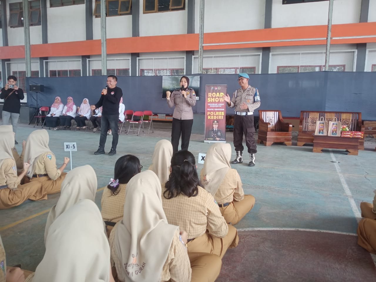 MEDIAINVESTIGASIMABES.CO.ID | KEDIRI (Jawa Timur) ~ Satuan Reserse Narkoba (Satresnarkoba) Polres Kediri saat melaksanakan kegiatan penyuluhan di SMAN 1 Gurah, Kabupaten Kediri, pada Rabu (24/9/2025).