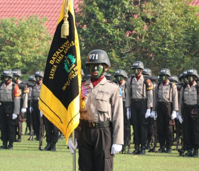 Dalam upacara yang berlangsung khidmat, angkatan Diktukba Polri T.A. 2025 SPN Polda Jatim secara resmi diberi nama “Satria Yana Anucasana”.